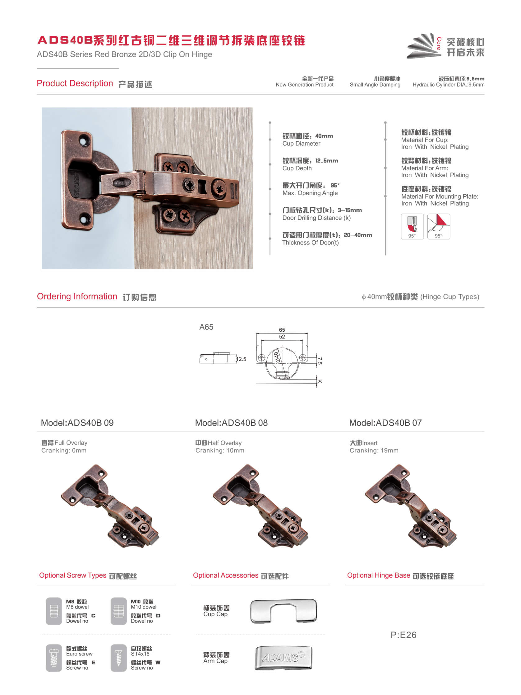 ADS40B系列紅古銅二維三維調節拆裝底座鉸鏈