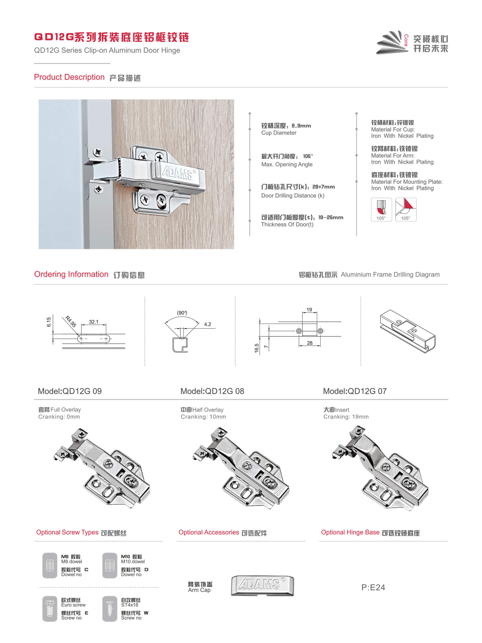 QD12G系列拆裝底座鋁框鉸鏈
