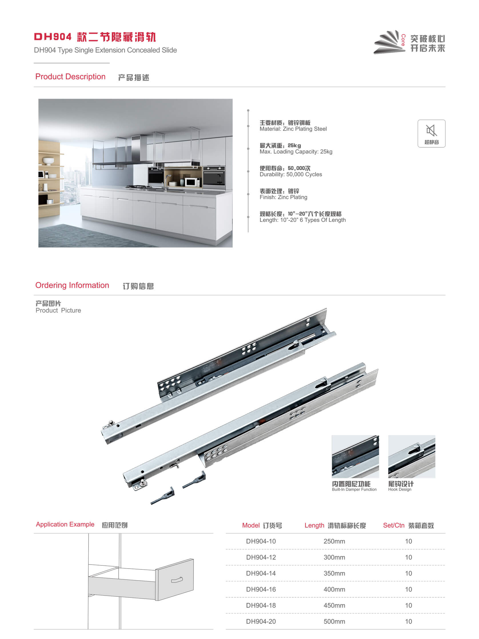 DH904 Type Single Extension Concealed Slide
