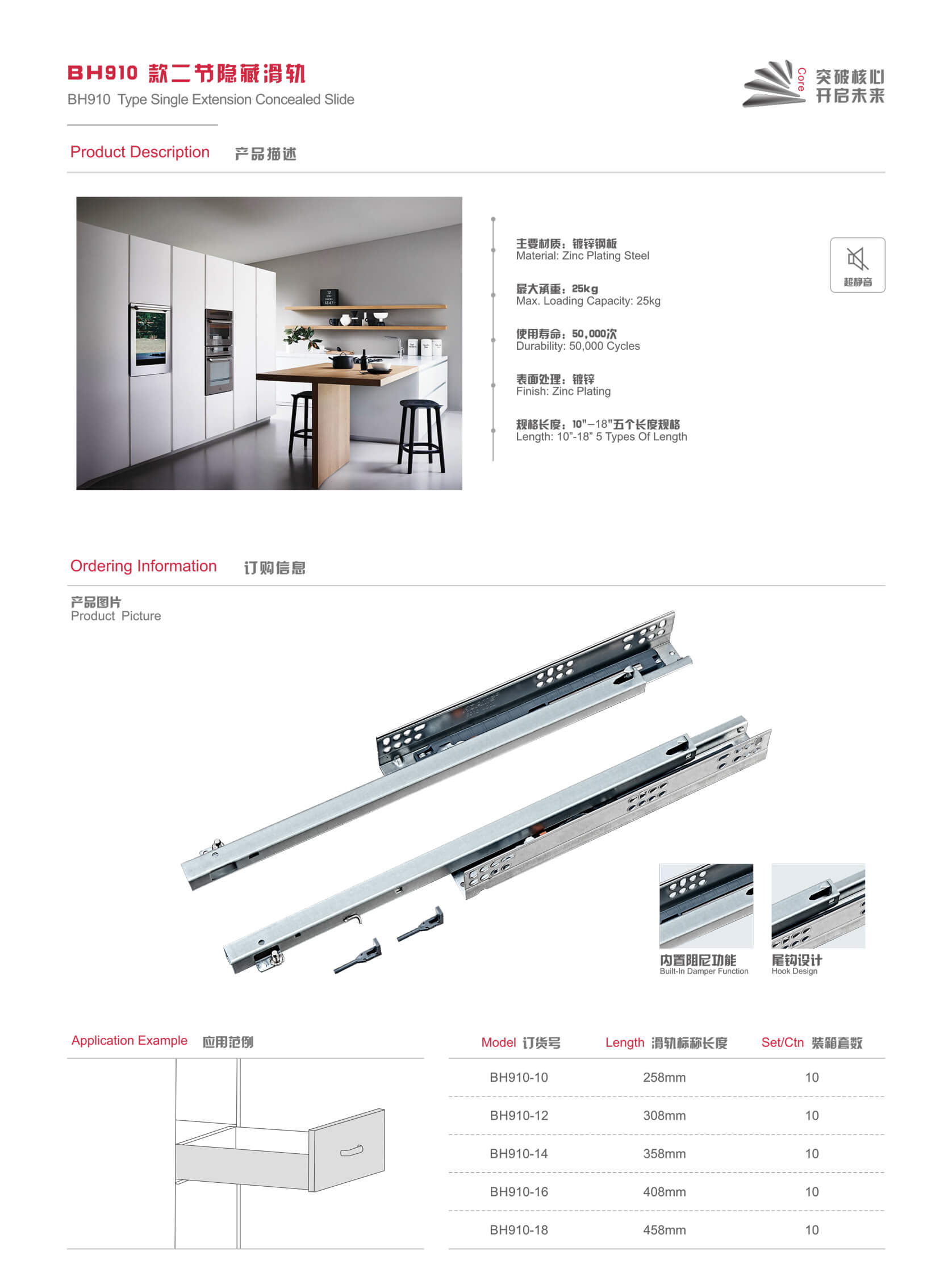 BH910 Type Single Extension Concealed Slide