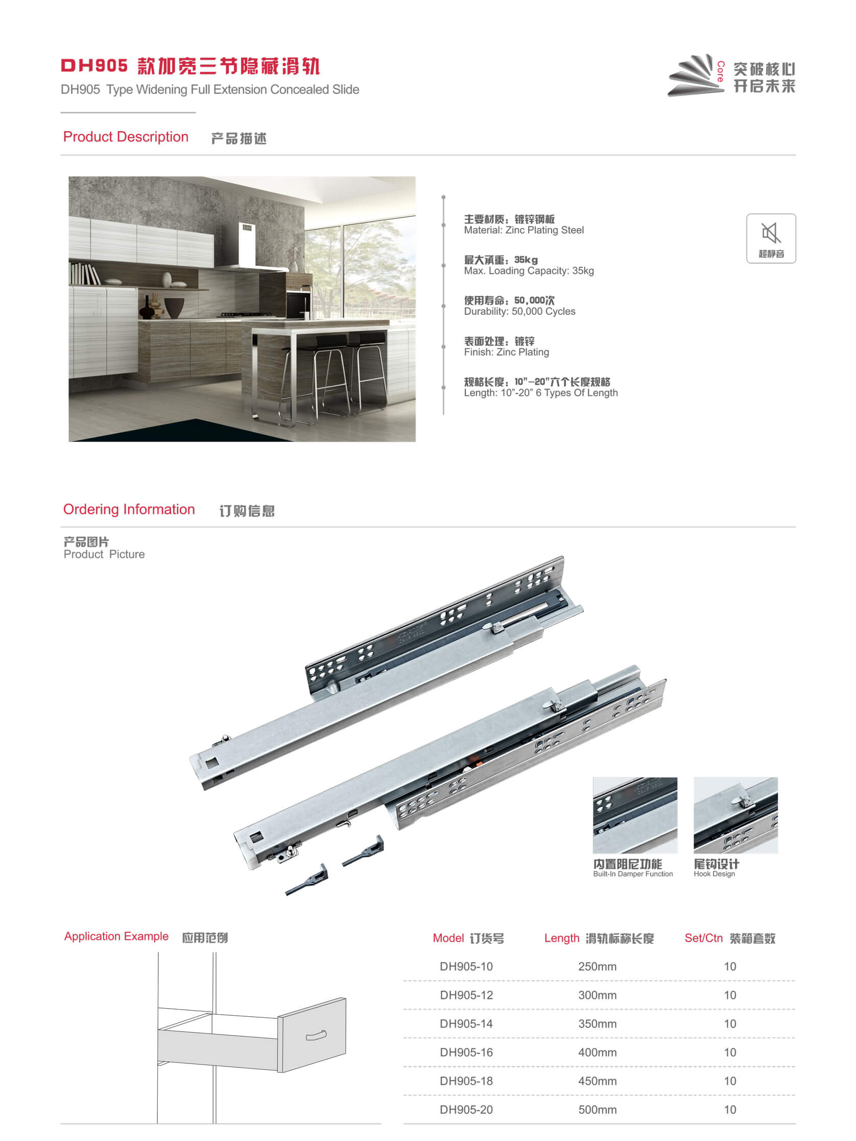 DH905 Type Widening Full Extension Concealed Slide